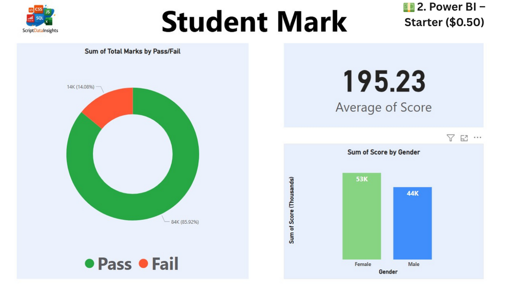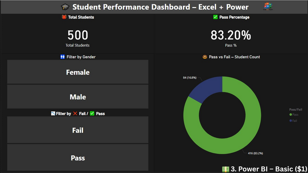 ๐ Track student grades, pass/fail, averages, and performance with this interactive Excel + Power BI dashboard. Free Excel version included, premium Power BI version available.